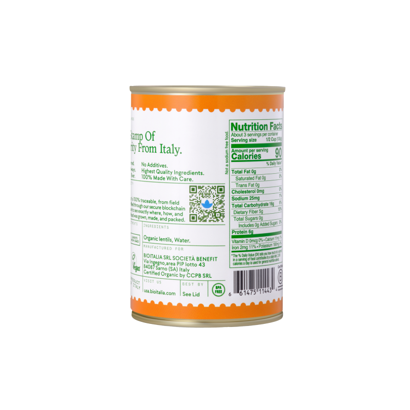 These boiled lentils capture the authentic flavor of lentils, known to be a natural source of essential proteins, fiber, and nutrients. Packaged in BPA free cans.