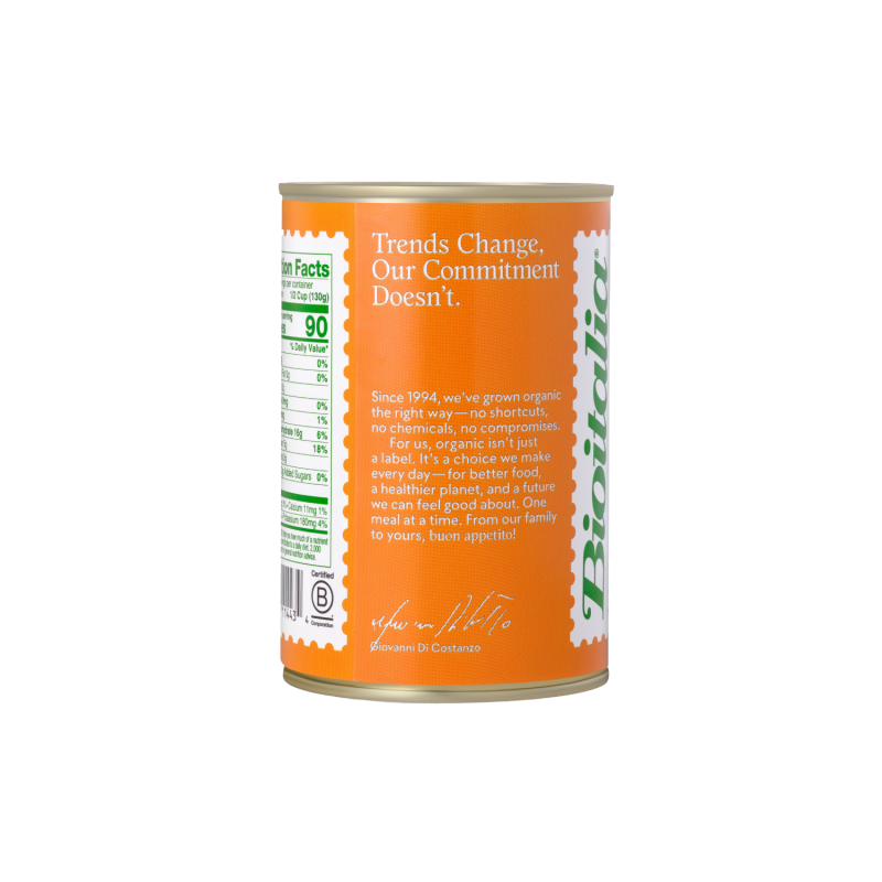 Our canned pre-cooked pulses are grown using organic methods, with a focus on environmental sustainability and product quality. They are packaged in BPA-free cans. Given the international market alerts and the recent reassessment by EFSA of BPA safety, which significantly reduces the tolerable daily intake threshold, Bioitalia has decided not to use it in its products, even though they have always been safe. Furthermore, their preparation offers several advantages: we do not add salt to the preserving water. The pulses are blanched at 80 degrees. When still warm, we package them and then sterilize them at 121 degrees, creating a vacuum inside the can. This allows us not to add salt for preservation.