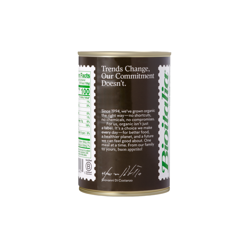 They are packaged in BPA-free cans. Given the international market alerts and the recent reassessment by EFSA of BPA safety, which significantly reduces the tolerable daily intake threshold, Bioitalia has decided not to use it in its products, even though they have always been safe. Furthermore, their preparation offers several advantages: we do not add salt to the preserving water. The legumes are blanched at 80 degrees. When still warm, we package them and then sterilize them at 121 degrees, creating a vacuum inside the organic legume jar. This allows us not to add salt for preservation.