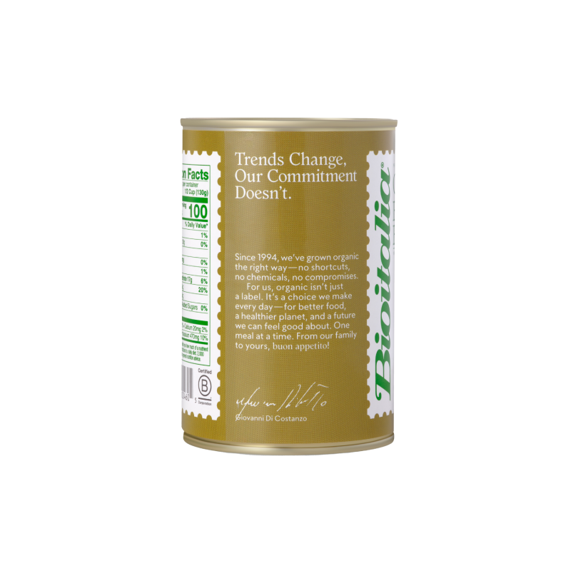 They are packaged in BPA-free cans. Given the international market alerts and the recent reassessment by EFSA of BPA safety, which significantly reduces the tolerable daily intake threshold, Bioitalia has decided not to use it in its products, even though they have always been safe. Furthermore, their preparation offers several advantages: we do not add salt to the preserving water. The legumes are blanched at 80 degrees. When still warm, we package them and then sterilize them at 121 degrees, creating a vacuum inside the organic legume jar. This allows us not to add salt for preservation.