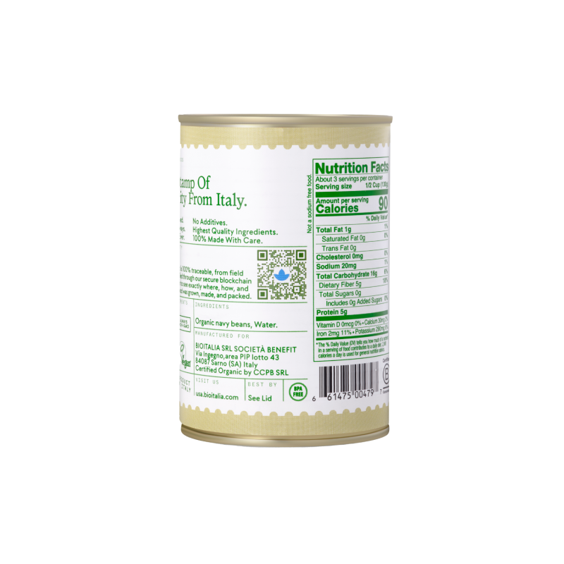 These boiled navy beans capture the authentic flavor of round beans, appreciated for their shape and delicate taste. Packaged in BPA free cans.