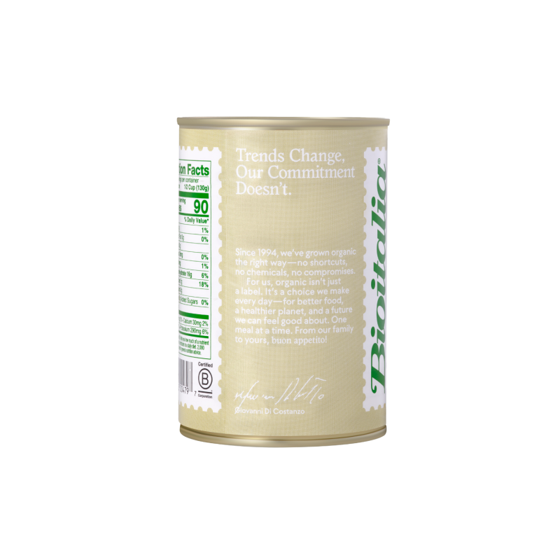 Our canned pre-cooked pulses are grown using organic methods, with a focus on environmental sustainability and product quality. They are packaged in BPA-free cans. Given the international market alerts and the recent reassessment by EFSA of BPA safety, which significantly reduces the tolerable daily intake threshold, Bioitalia has decided not to use it in its products, even though they have always been safe. Furthermore, their preparation offers several advantages: we do not add salt to the preserving water. The pulses are blanched at 80 degrees. When still warm, we package them and then sterilize them at 121 degrees, creating a vacuum inside the can. This allows us not to add salt for preservation.